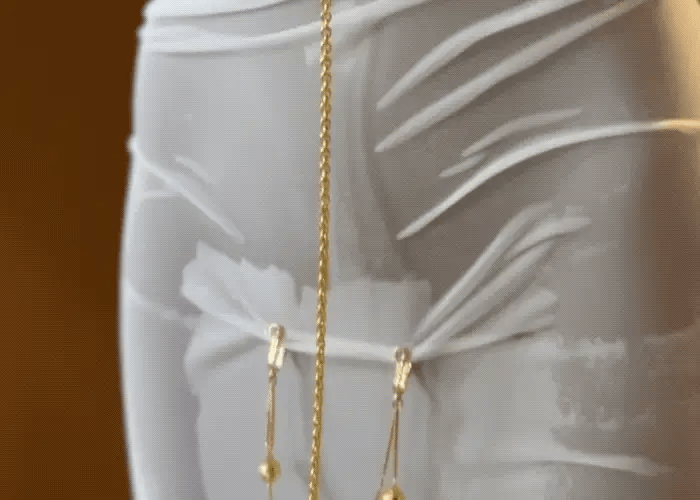 The increasing dragging sense makes the physical or mental suffering more excessive. Jingling of every step indicates that the most private position is "bitten" helplessly.